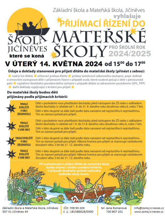 Přijímací řízení do MŠ Jičíněves