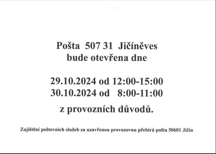 Úvod > O obci > Aktuality > Provozní doba pošta Partner Jičíněves